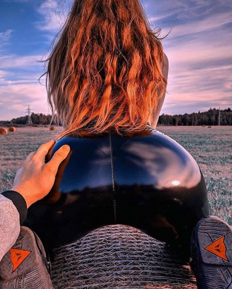 More lovely ladies showing off their sexy asses in tight leather clothing and other shiny/leather-look garments: